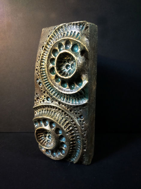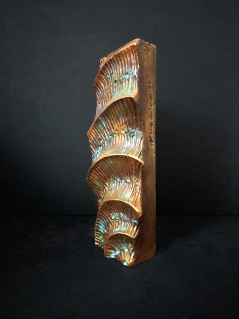 Inspired by the same lines and textures as wooden totems, but made of concrete then lacquered.